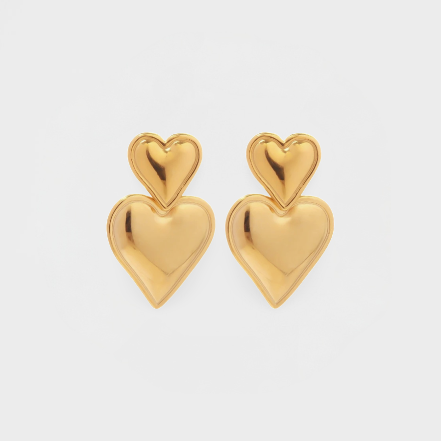 Add a touch of romance to any outfit with these Double Heart Statement Earrings.