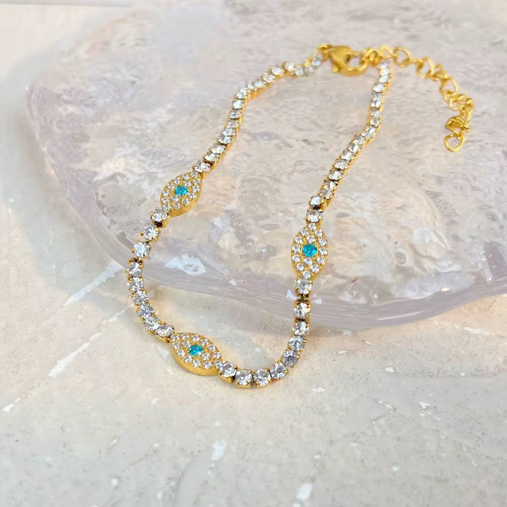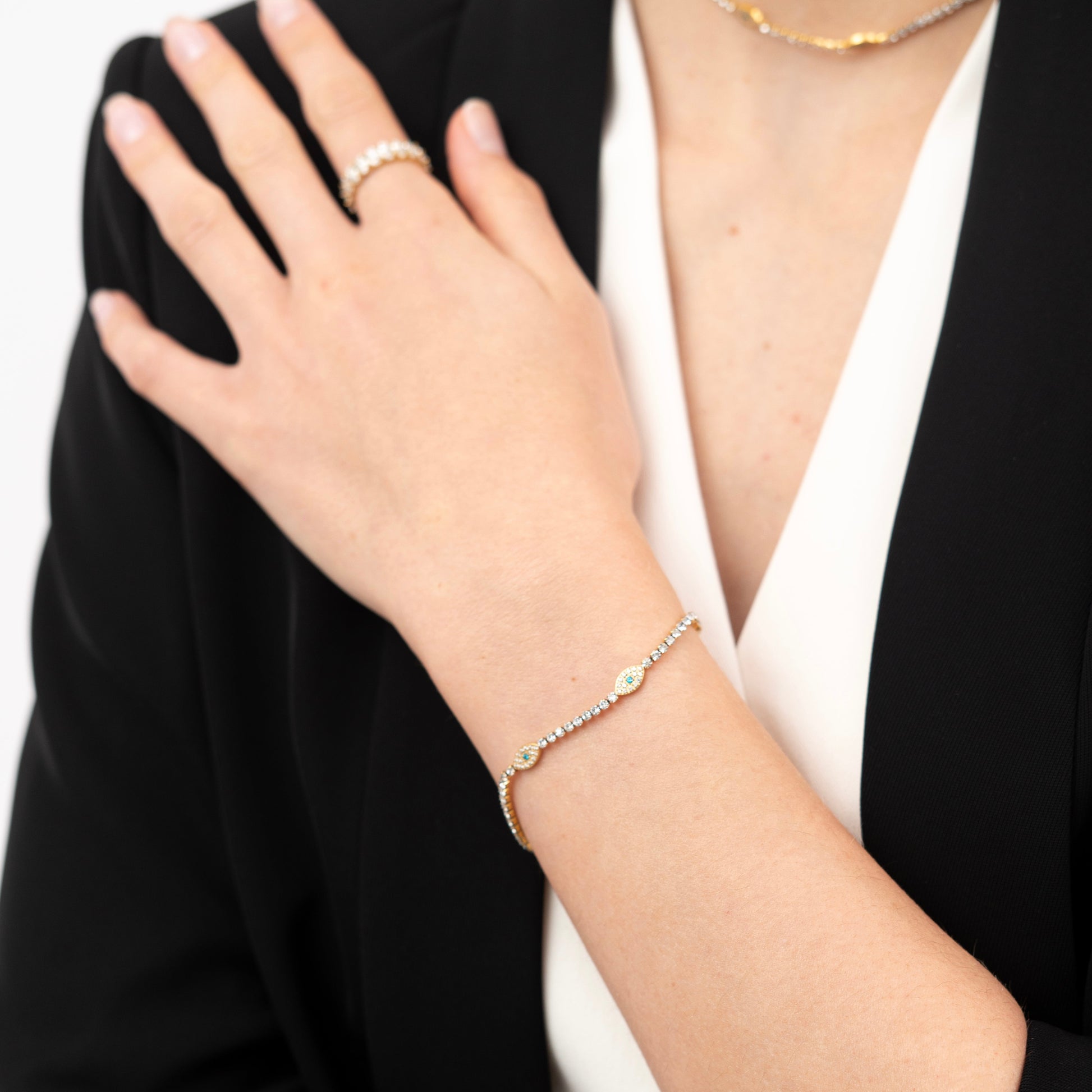 Shimmering with meaning, our Evil Eye Tennis Bracelet is your go-to for effortless style and positive vibes.
