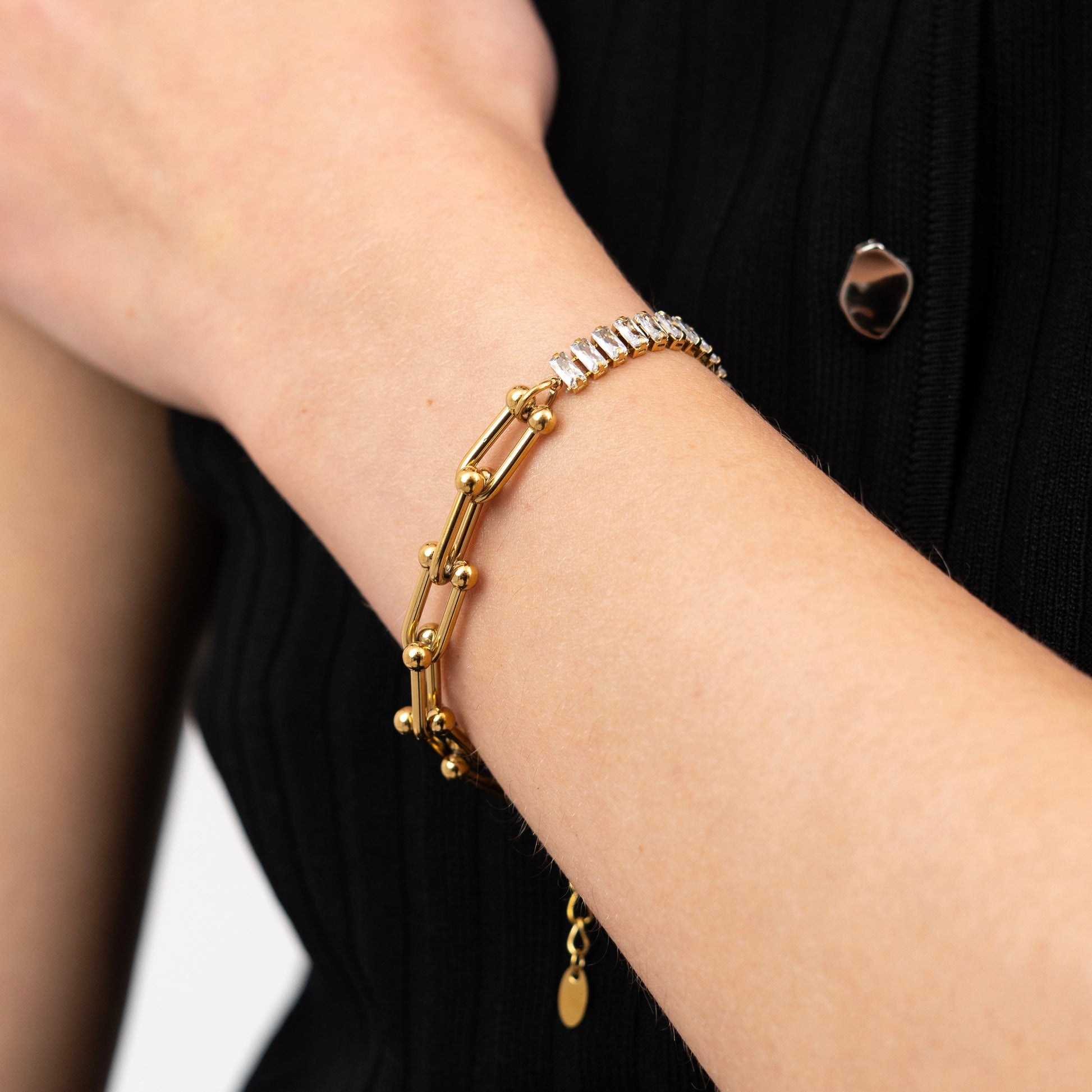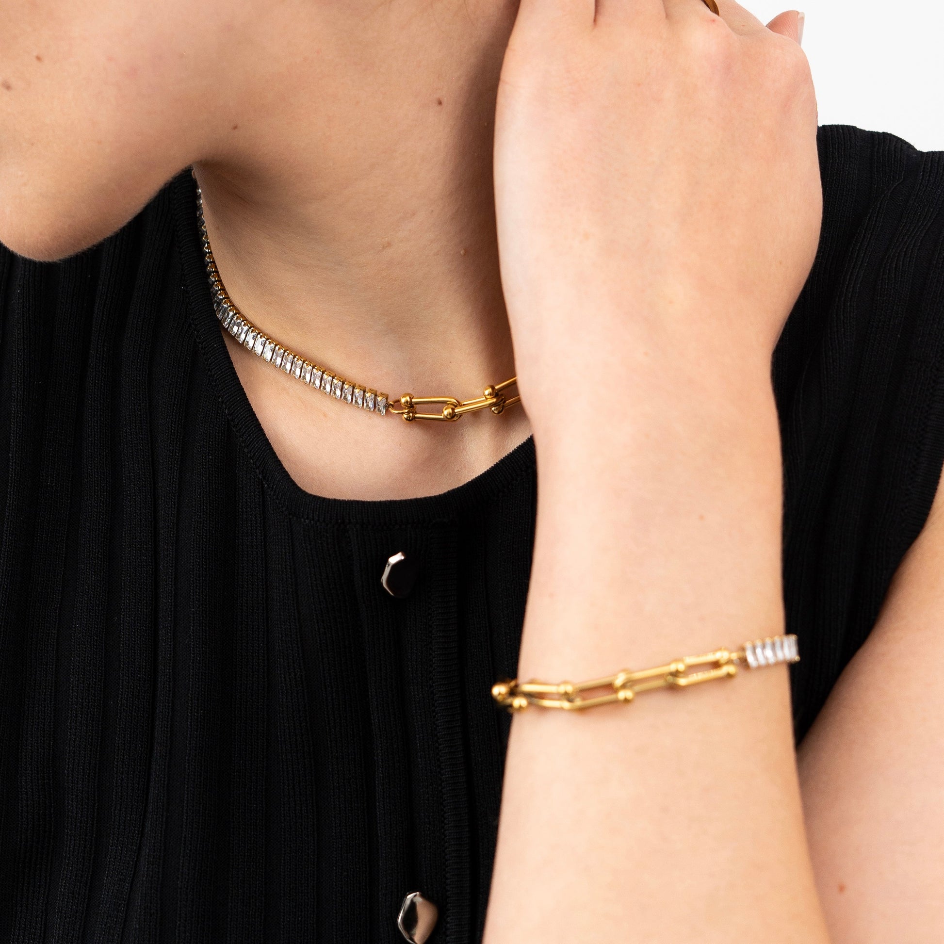 Elevate your look with the timeless elegance of a tennis and link bracelet✨ A must-have accessory for any jewelry collection.