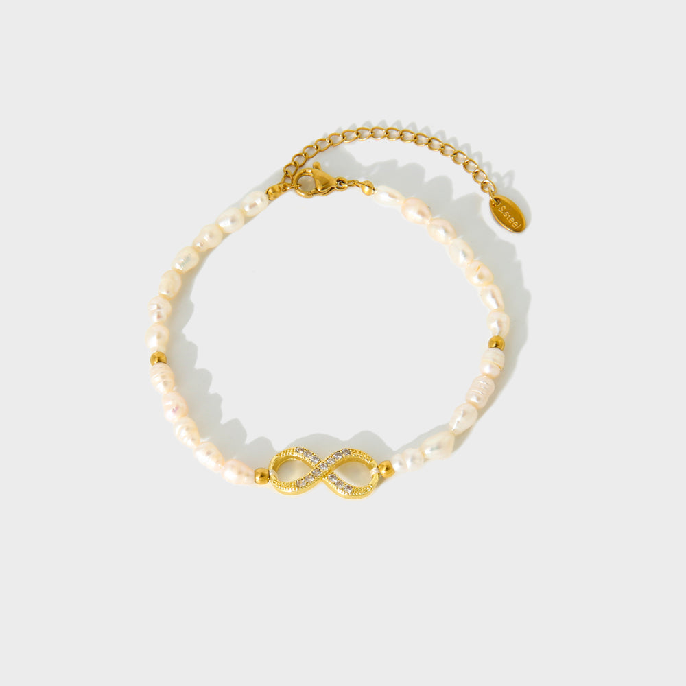Elevate your look with the timeless elegance of a pearls and infinity charm bracelet✨ A must-have accessory for any jewelry collection.