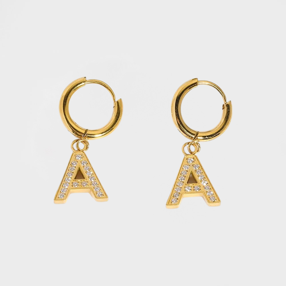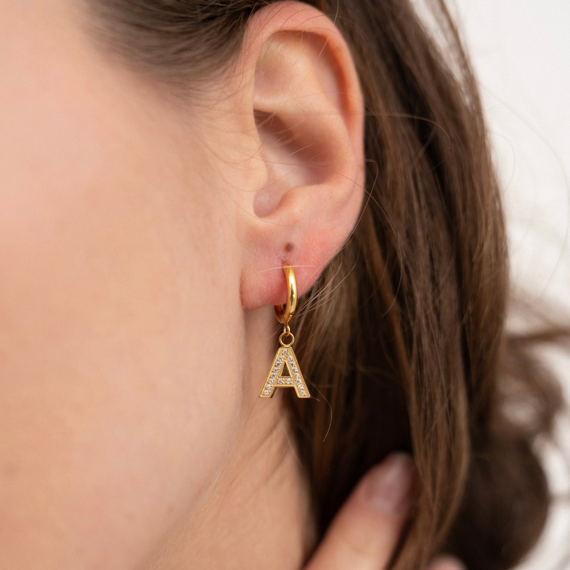 Pave Initial Huggie Hoop Earring