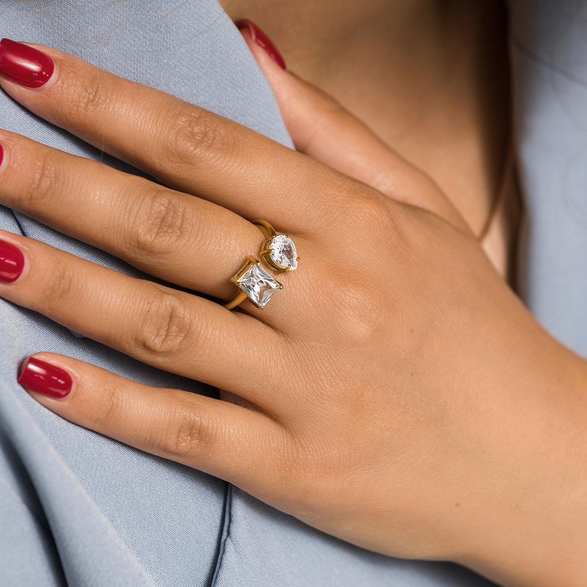 Experience the craftsmanship that intertwines brilliance and durability in our Pear & Square Multicolor Ring. Each gemstone is meticulously selected and expertly set to ensure lasting sparkle and shine. Crafted with premium materials, this ring not only captures attention with its vibrant colors but also promises enduring beauty that stands the test of time.