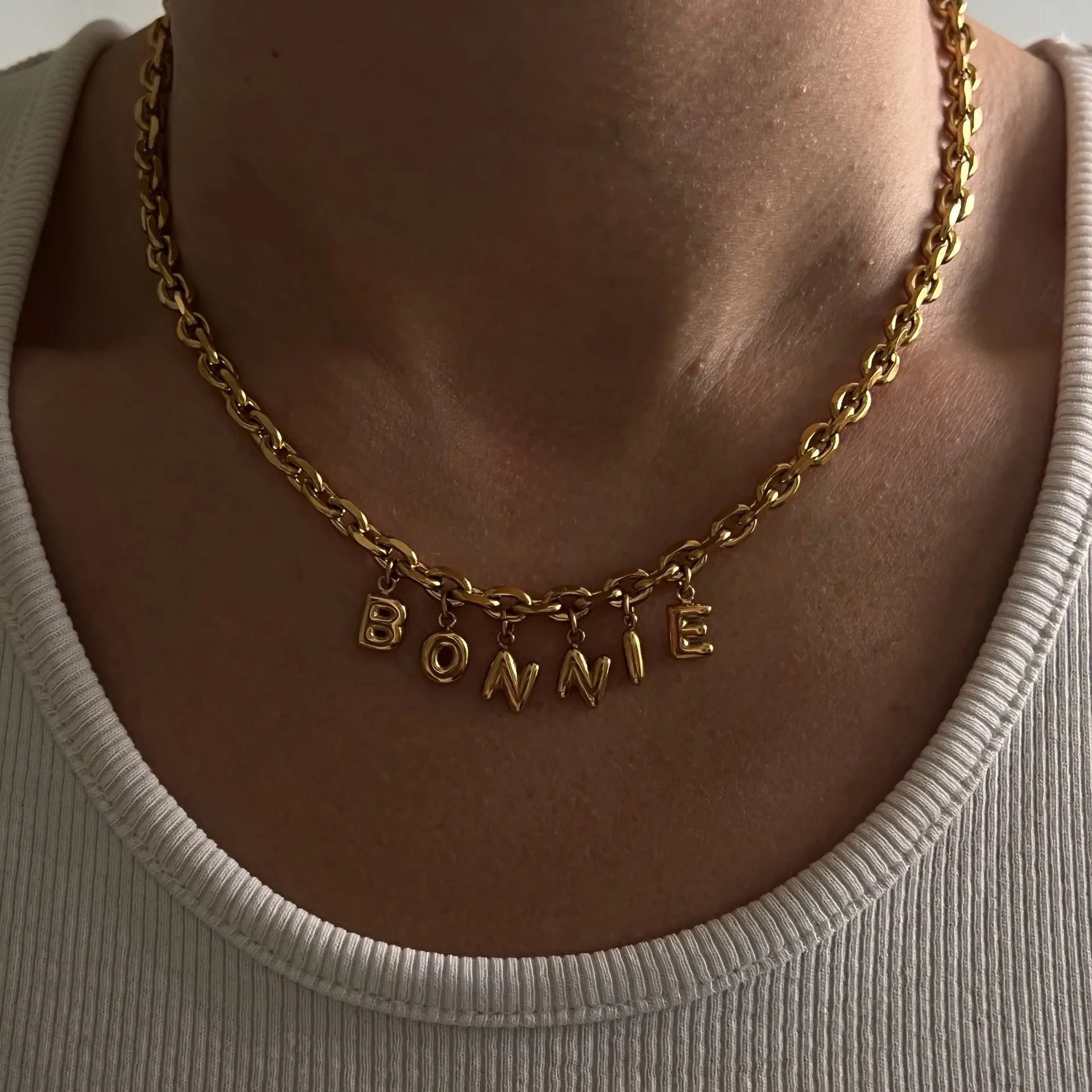 Indulge in a fashion accessory that transcends trends, offering a timeless allure. Our Personalized Bubble Name Choker is not just jewelry; it's an expression of your distinct personality. Each letter is meticulously crafted, creating a captivating visual symphony that effortlessly complements any outfit. Stand out from the crowd with this shimmering piece that turns heads and sparks conversations.