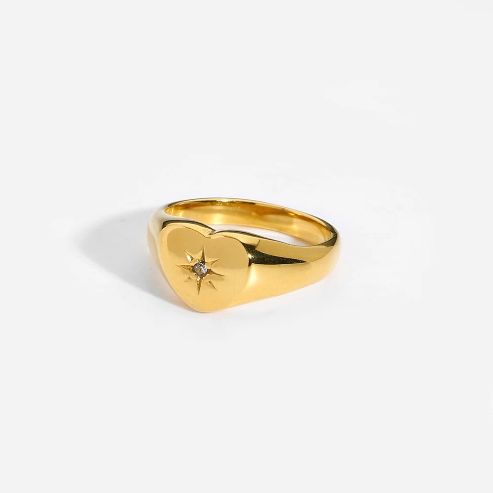 Signet Starburst Heart Ring