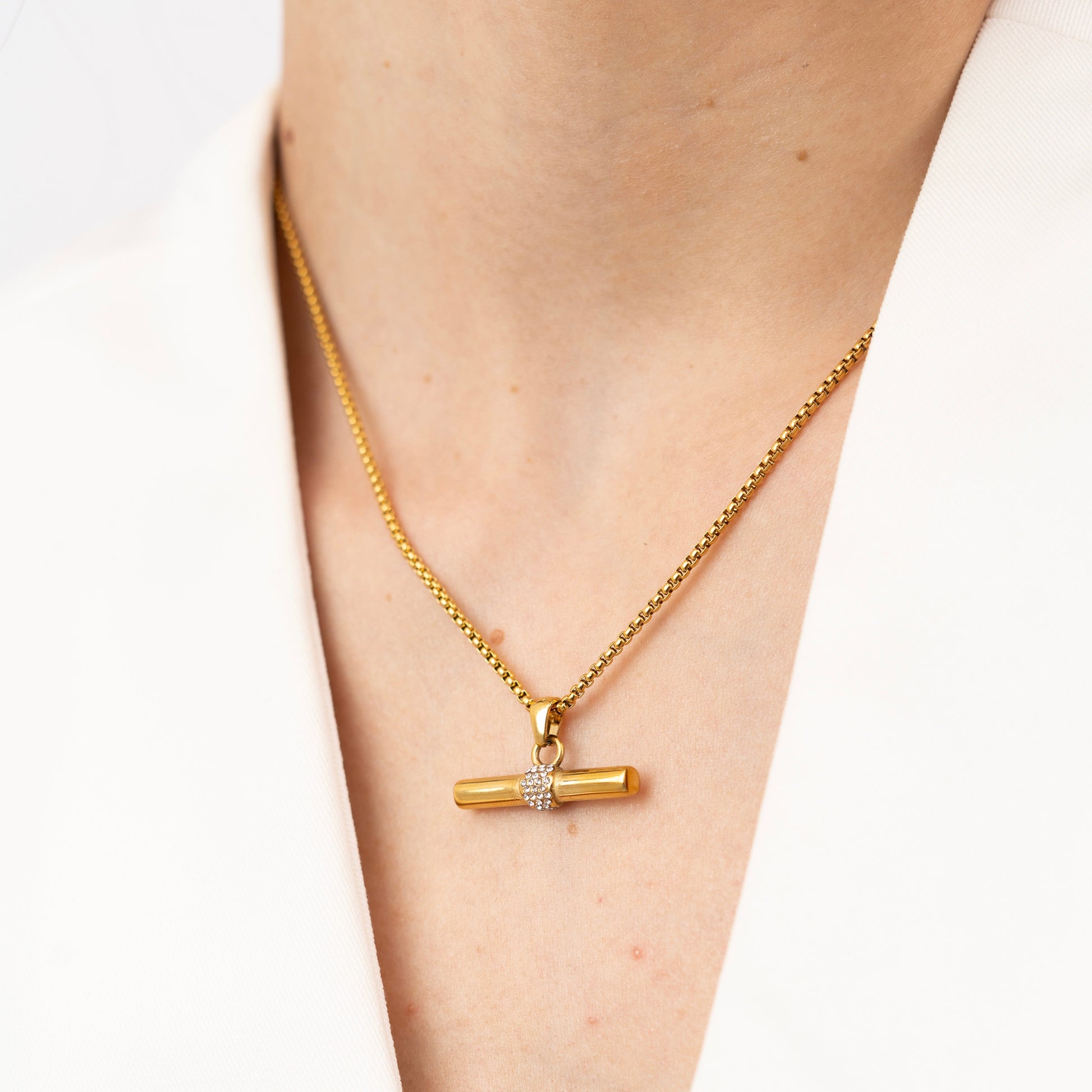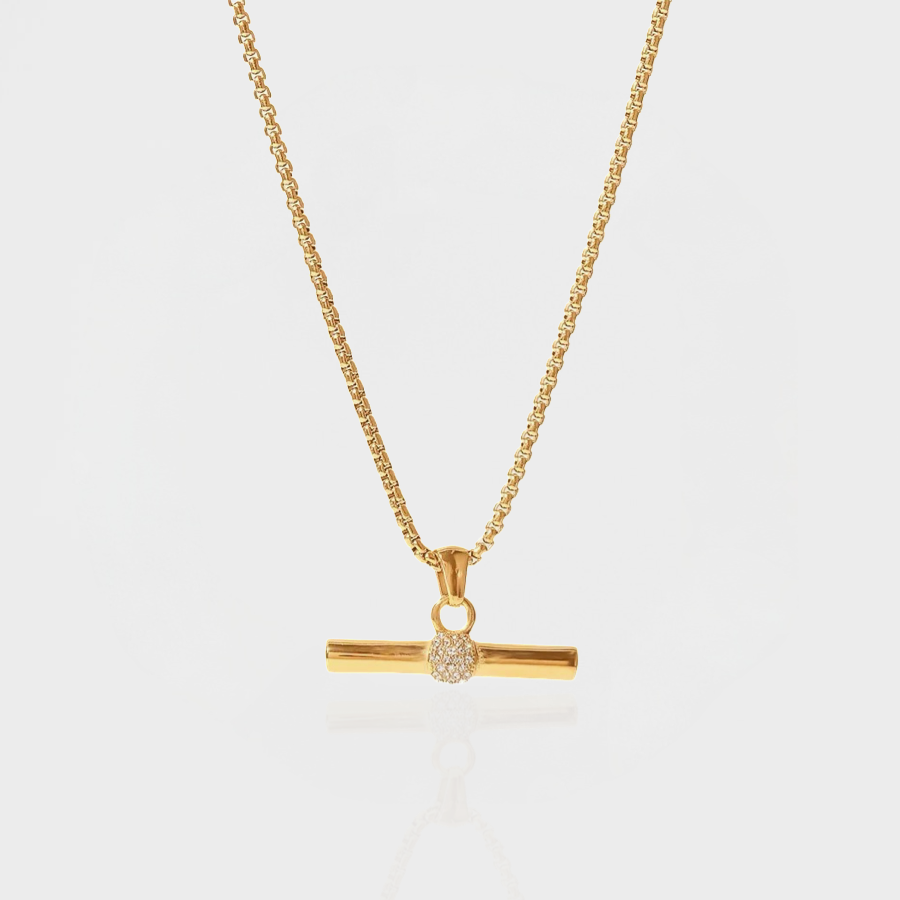 Captivating in green or crystal zircons, our T-Bar Necklace is a must-have for those who crave elegance with a pop of color.